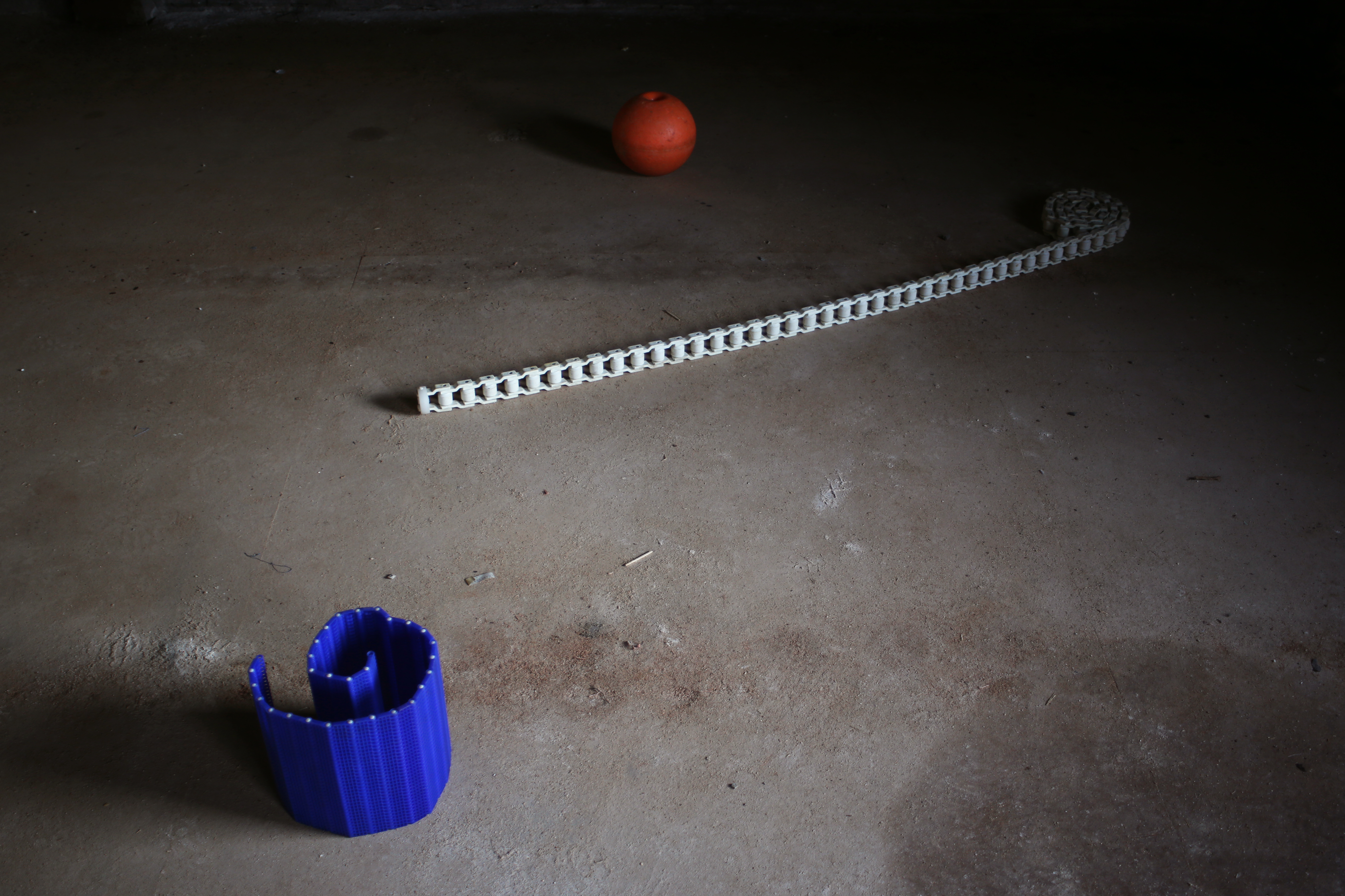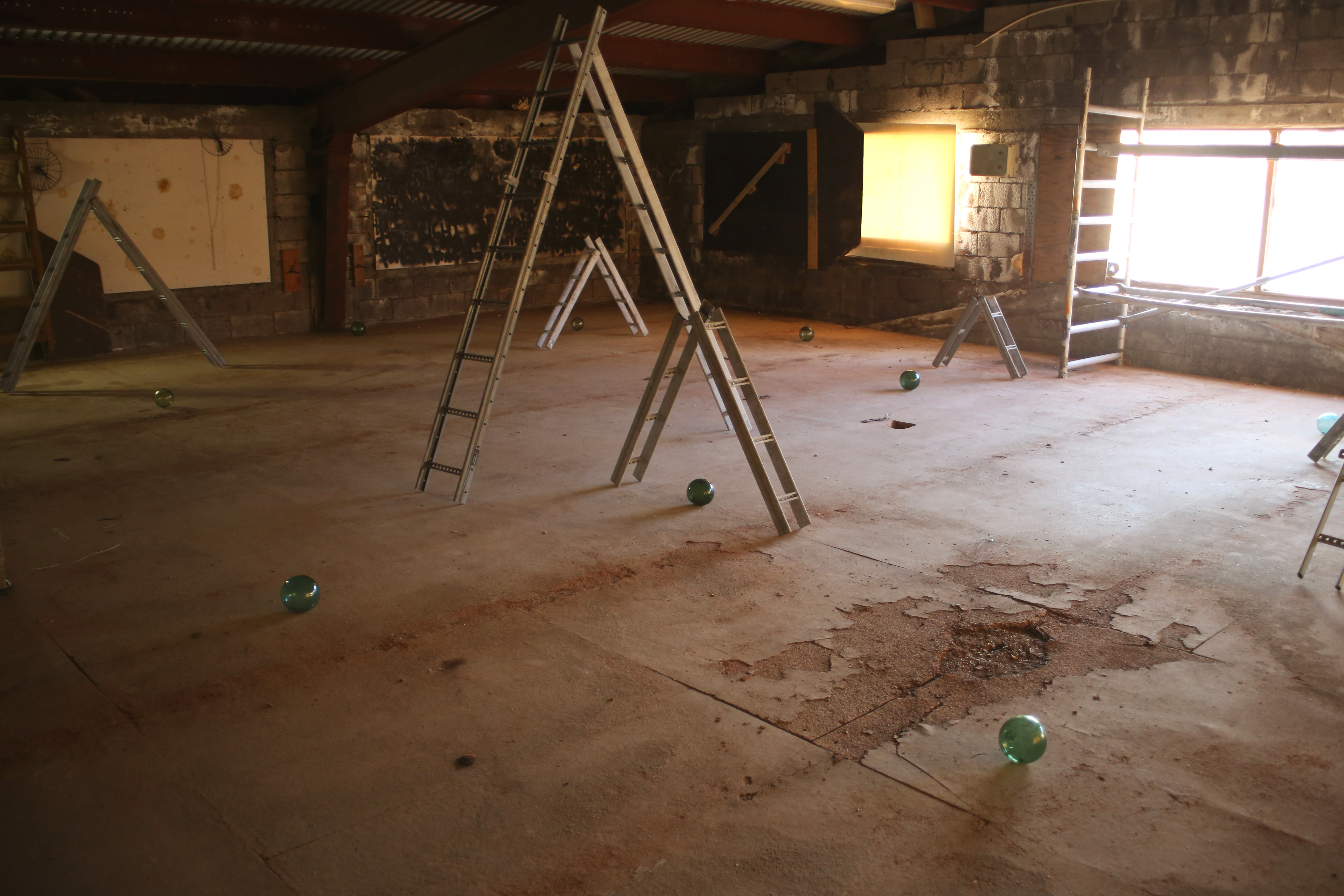 A series of installations exploring the relationships of objects to each other and the room in which they are placed. All materials were at one time used when the Fish Factory Creative Centre was in commercial operation.