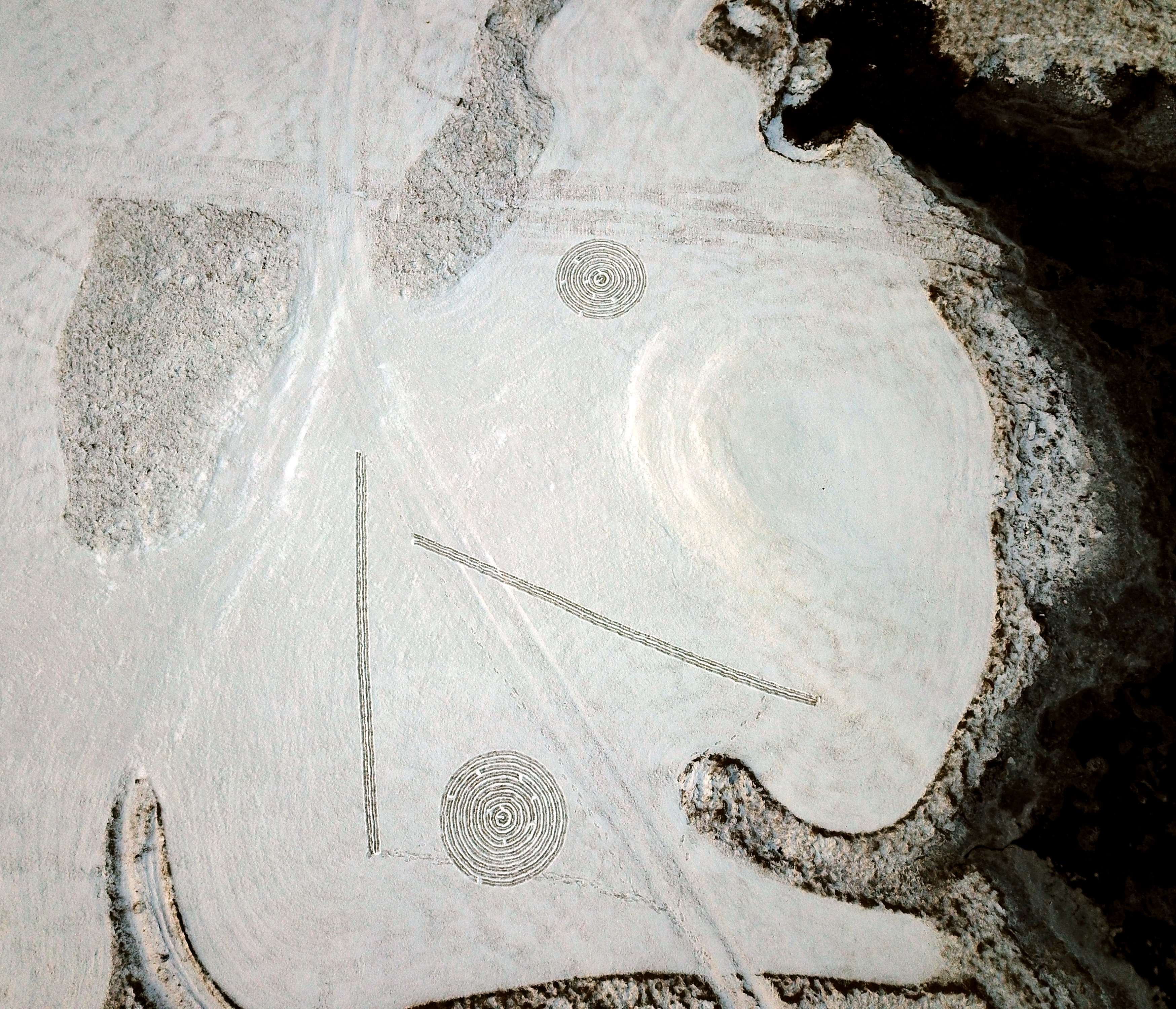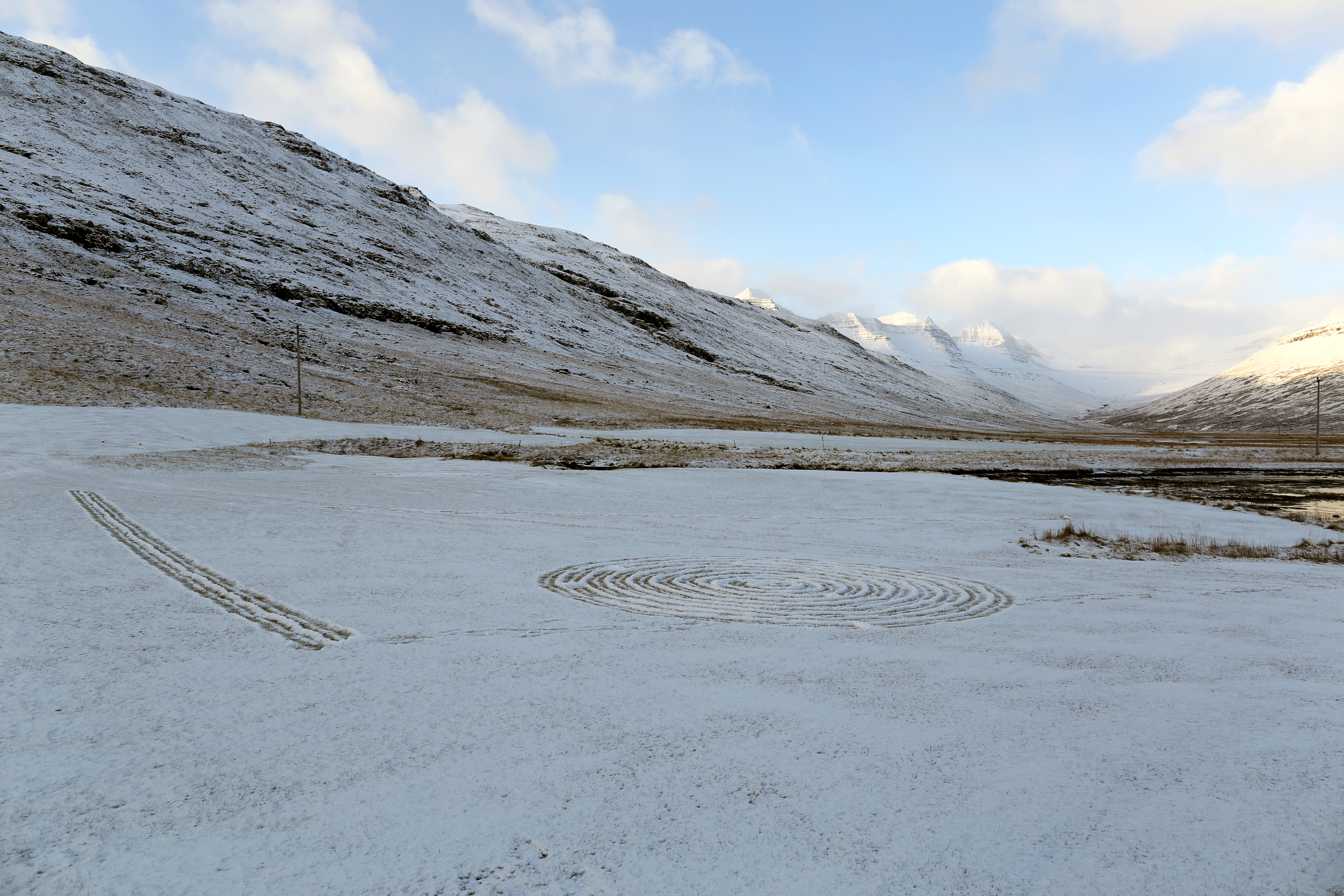 This series of landscape drawings was created during my residency at the Fish Factory Creative Centre in Stöðvarfjörður, Iceland. The markings I made in snow were temporary and in direct relationship to the land where they were created. I wanted to capture multiple perspectives of the same object, showing the impossibility of representing the whole.